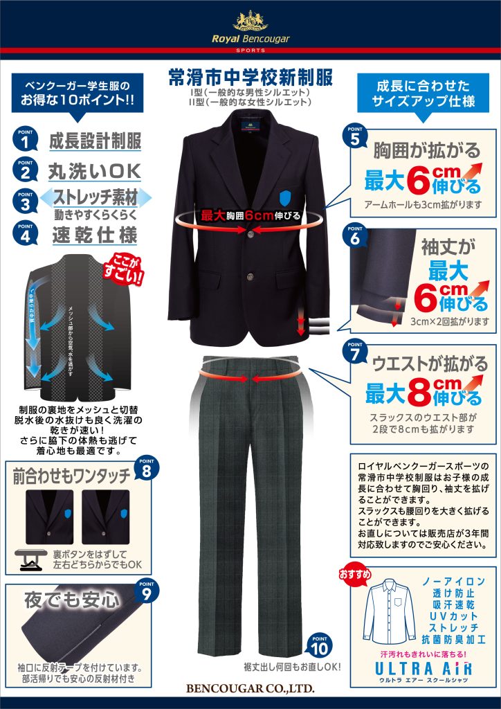 「常滑市のブレザー制服は、基本的に各店が違う品物を扱っており、各店がお客さまのために工夫を凝らしたサービスをご提案しております」
