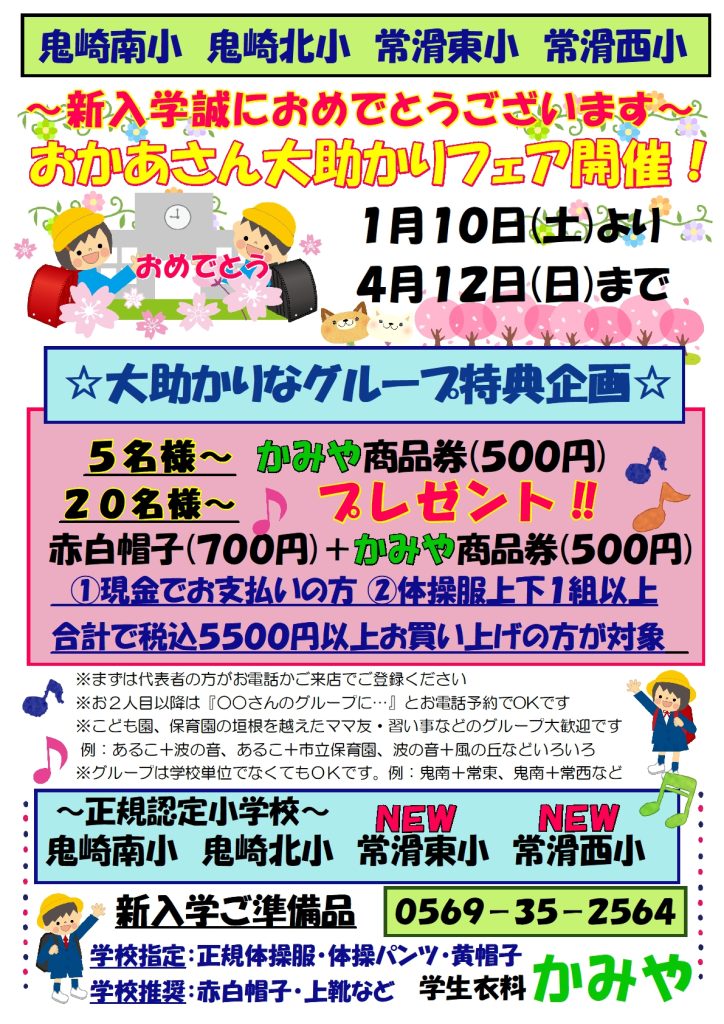 明けましておめでとうございます。 ~新小学1年生『おかあさん大助かりフェア』開催いたします~