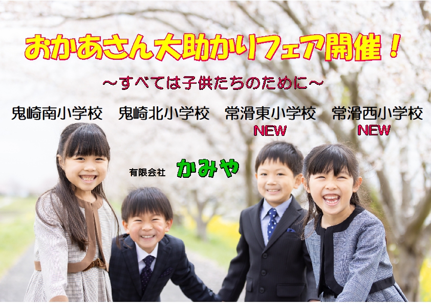 ※鬼崎南小学校、鬼崎北小学校の新1年生の方にも、例年通り『おかあさん大助かりフェア』を開催致します。